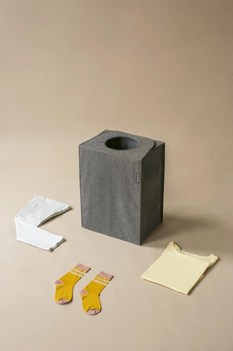 Een kind kan de was doen met de Brabantia Wasmand – 55 l – Pepper Black. Deze ingenieuze open-dicht wastas maakt de wasdag een makkie. De wastas is gemakkelijk te dragen, heeft een grote capaciteit en een handige inwerpopening. Met de magnetische draagbeugels gesloten, valt de vuile was eenvoudig door de ‘Quick-drop’ opening in de tas. Klap de bovenkant op wasdag open, en de tas is klaar voor gebruik!