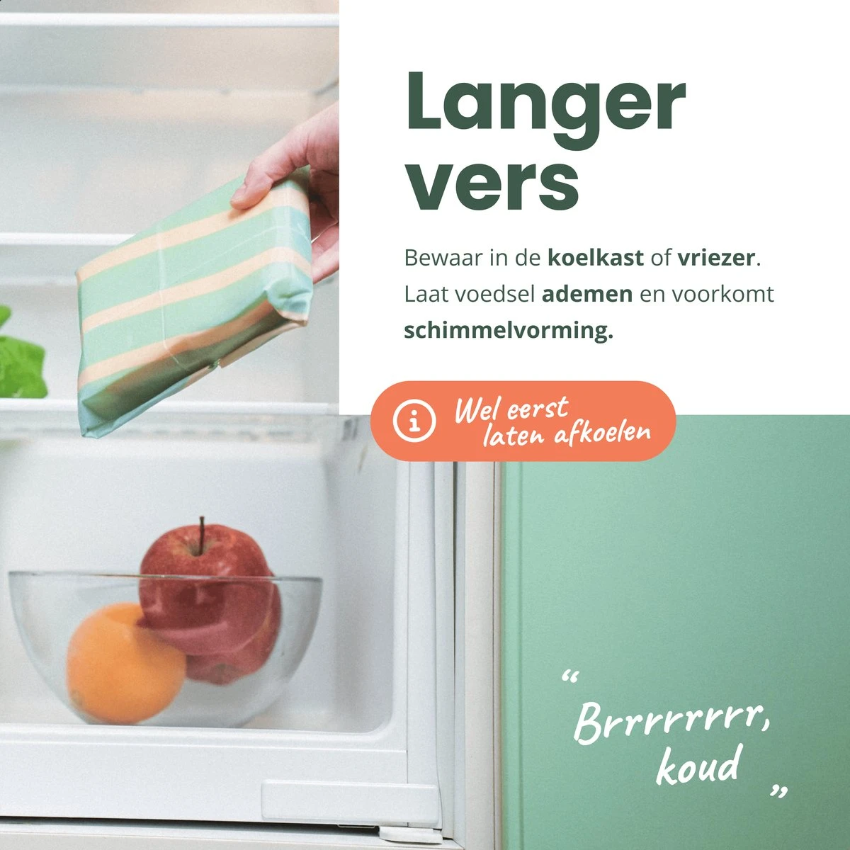 ✓ Langer vers – Met bijenwas doeken blijft je eten veel langer vers dan bij gebruik van plastic of aluminiumfolie. De wraps zijn luchtdoorlatend en antibacterieel, zodat schimmels en bacteriën langer weg blijven.