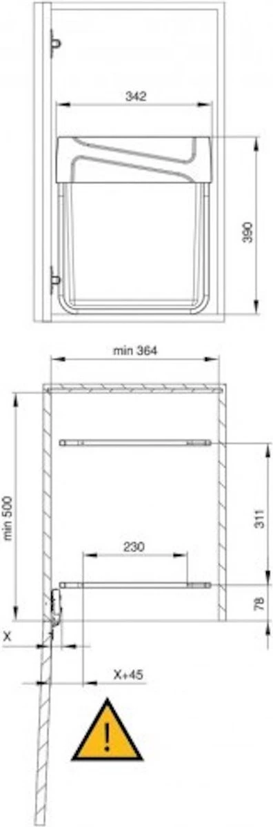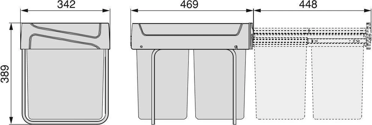 Let op: Deze prullenbak past perfect in keukenkastjes met een minimale deurbreedte van 36.4 cm, minimale inbouwdiepte van 49 cm en een minimale kasthoogte van 41 cm.