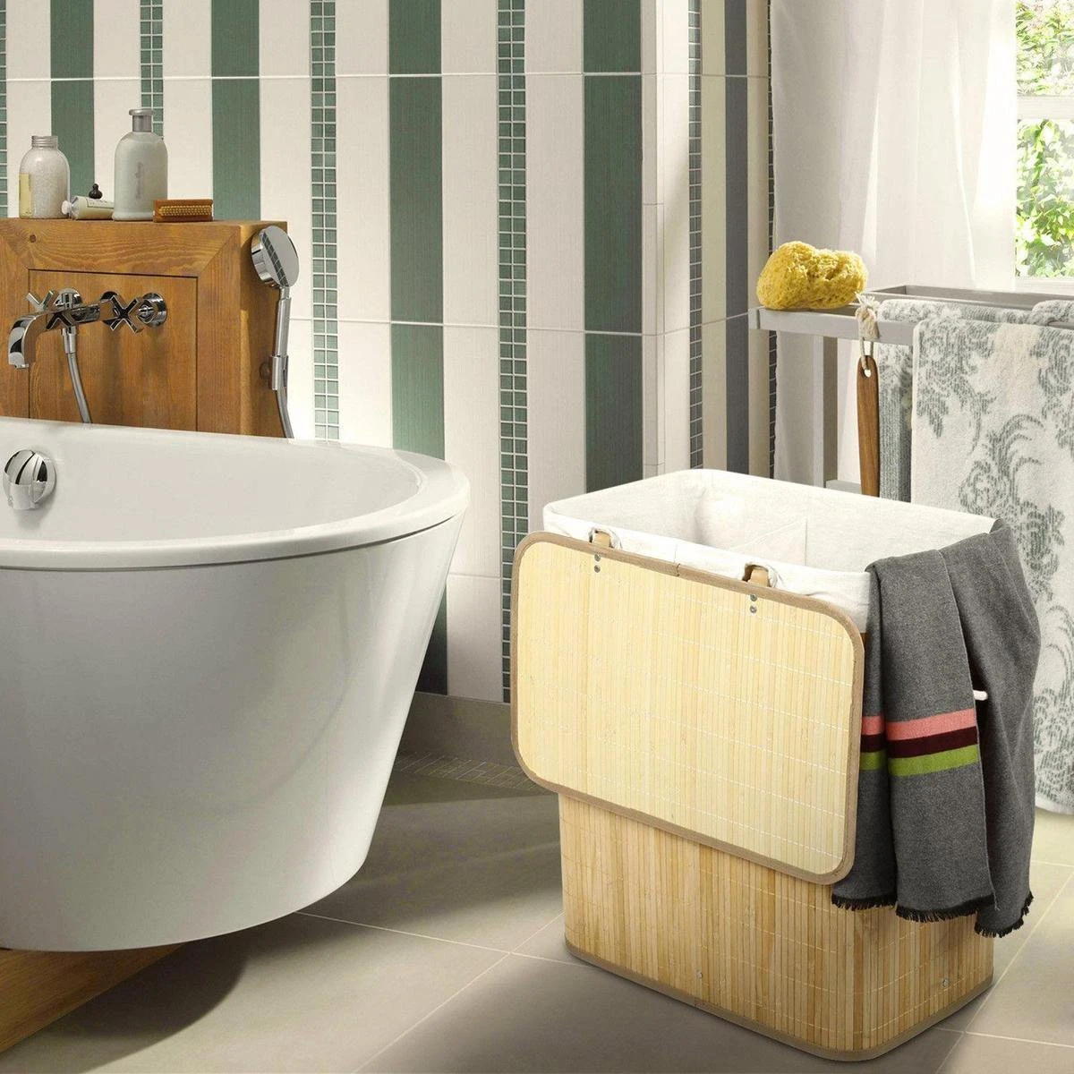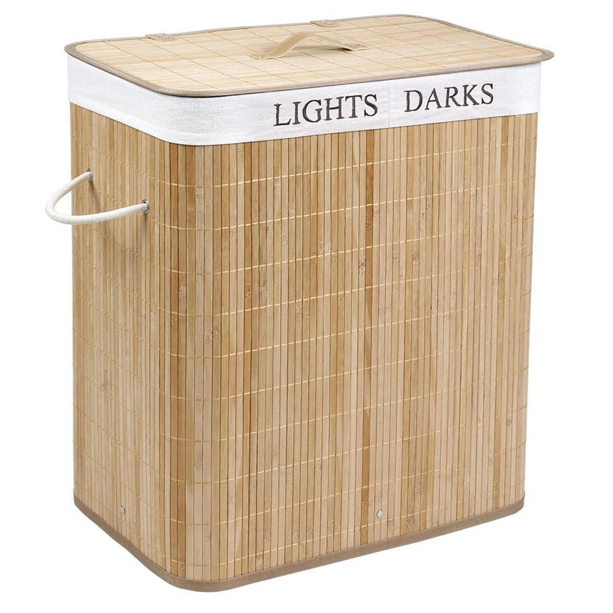 ▶ Natuurlijk elegante look: Door het bamboe hout heeft de wasmand een zachte, natuurlijke uitstraling. Het deksel laat toe om de wasmand gesloten te houden.