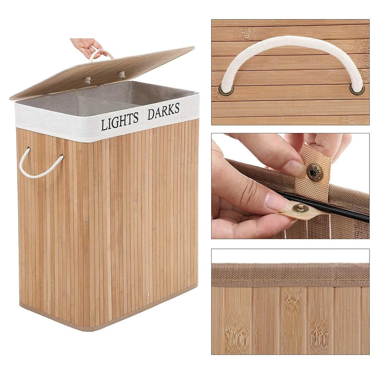 ▶ Stevige, maar lichte constructie: De wasmand is gemaakt uit natuurlijk bamboe met ijzeren verstevigingsdraad.