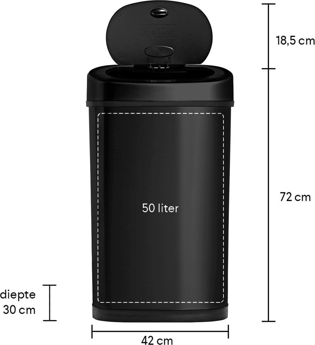 De #1 zwarte sensor prullenbak met 50 liter inhoud. Handig en hygiënisch in gebruik en met een luxe uitstraling. Ideaal voor thuis en op kantoor!