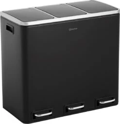 Mooie zwart gekleurde afvalscheidingsprullenbak met 54 liter inhoud (3 x 18 liter). Handig en hygiënisch in gebruik en met een luxe uitstraling. Ideaal voor thuis en op kantoor!