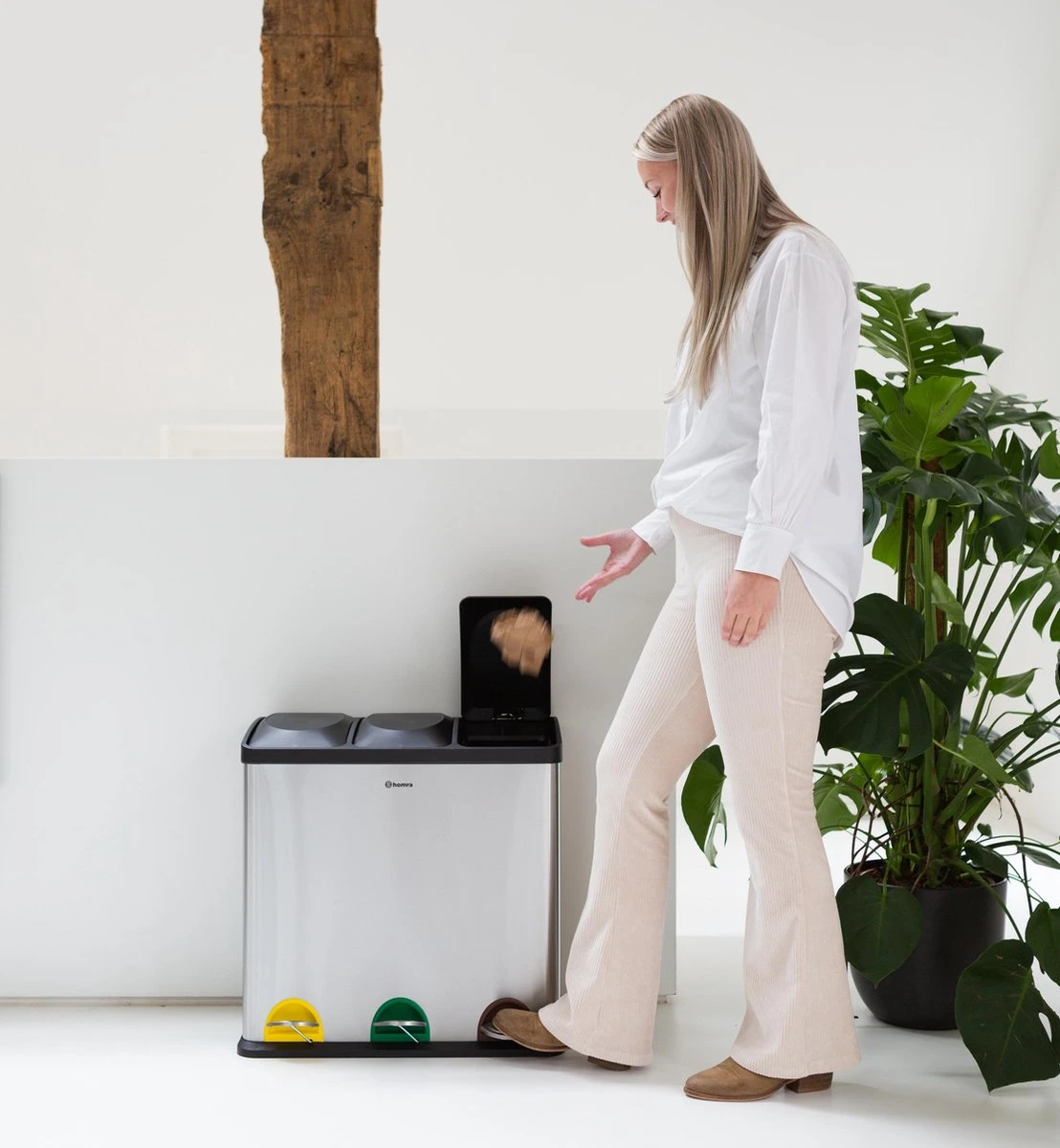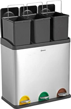 Een groot pluspunt van de prullenbak zijn de losse deksels. Als je afval wilt weggooien open je het juiste compartiment met het voetpedaal. Daarna gooi je het afval makkelijk en snel weg. De andere compartimenten blijven gesloten dus je opent alleen het compartiment dat je nodig hebt!