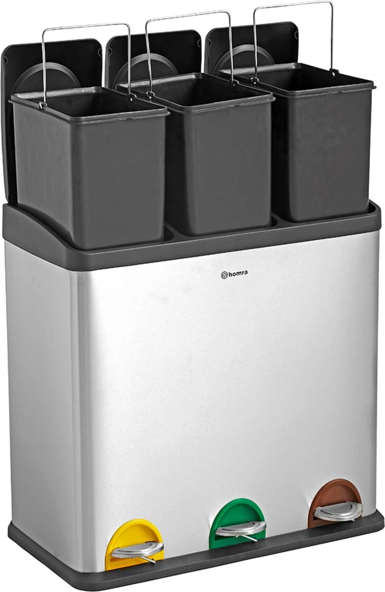 In de compartimenten zitten binnenemmers. Aan elke binnenemmer zit een handvat waardoor je de binnenemmer makkelijk uit de bak tilt. Hierdoor is het erg makkelijk om de prullenbak te legen.