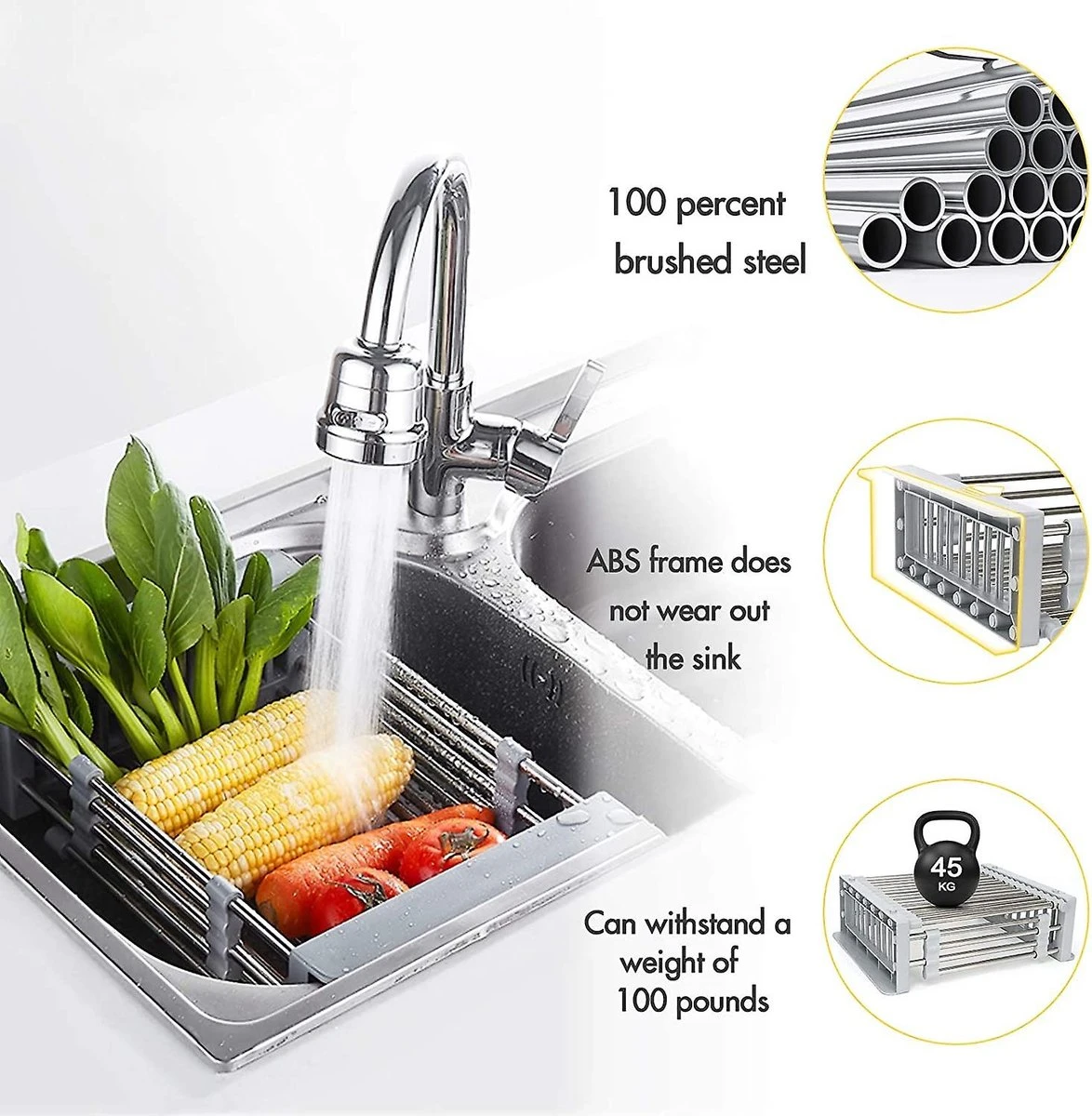Gebruik hem als afdruiprek ,opbergmand ,zeef,vergiet of gewoon als gootsteen organizer.