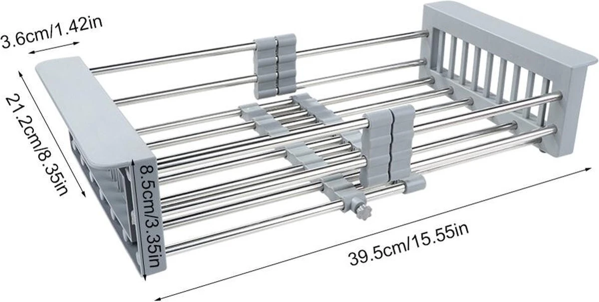 De vergiet kan in lengte versteld worden zodat deze geschikt is voor elk type gootsteen. Het is namelijk wel zo hygiënisch om de vergiet boven de gootsteen te laten hangen. De minimale lengte is 310 mm, deze kan worden versteld naar maximaal 460 mm en alle afmetingen die hier tussen zitten. Het kan dus niet anders dan dat deze vergiet perfect past in jouw gootsteen.