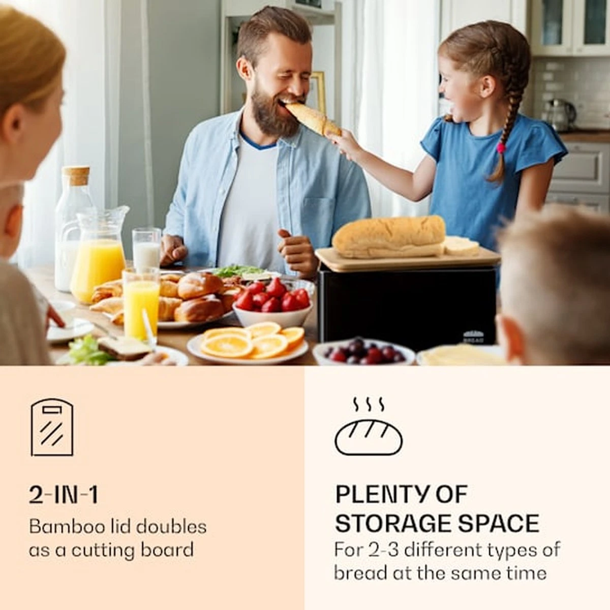 - Robuust: stabiele broodtrommel, groot genoeg voor het tegelijkertijd bewaren van 2-3 verschillende soorten brood