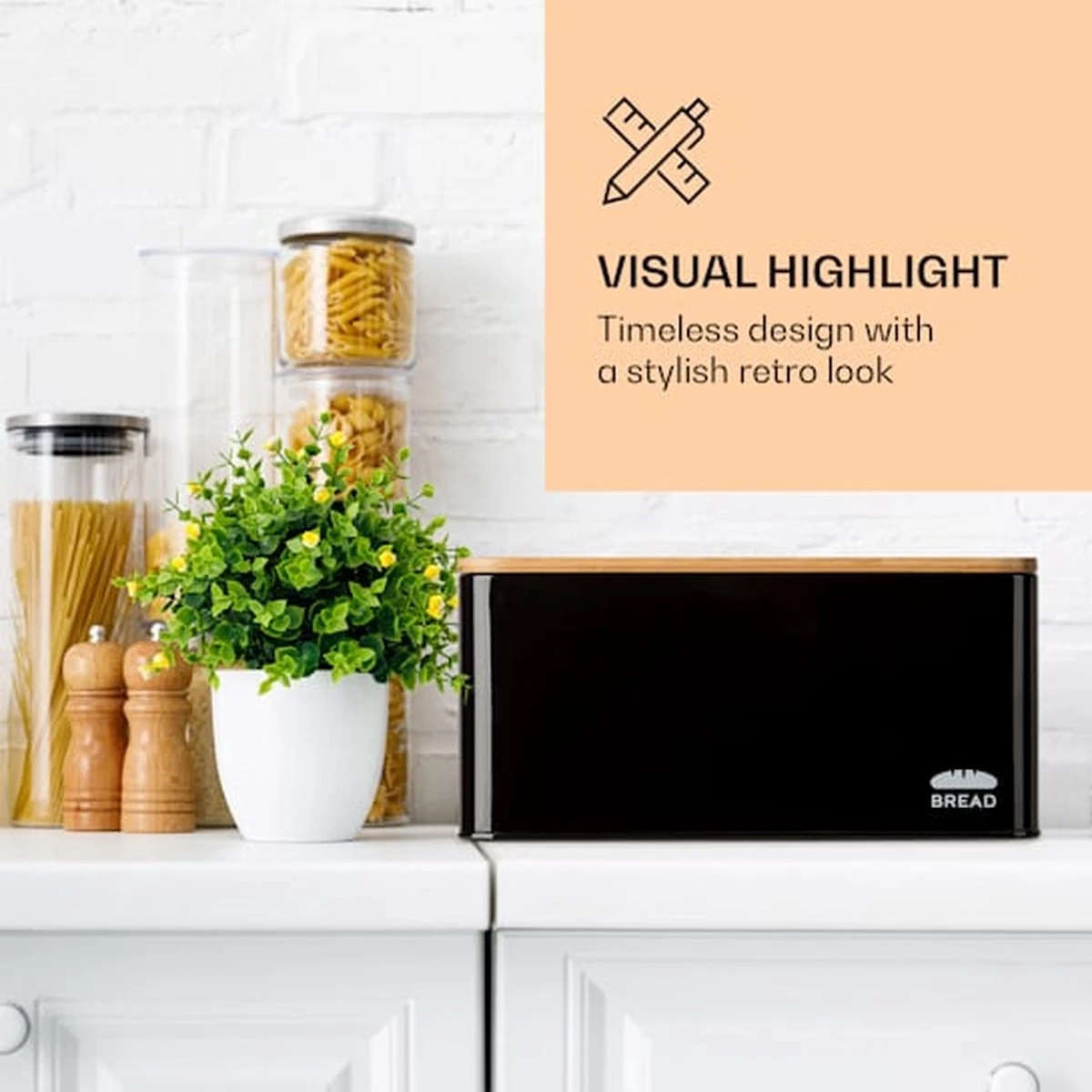 - Edel design: door zijn tijdloze design in retro-look van de jaren 40 is de broodtrommel een absolute blikvanger