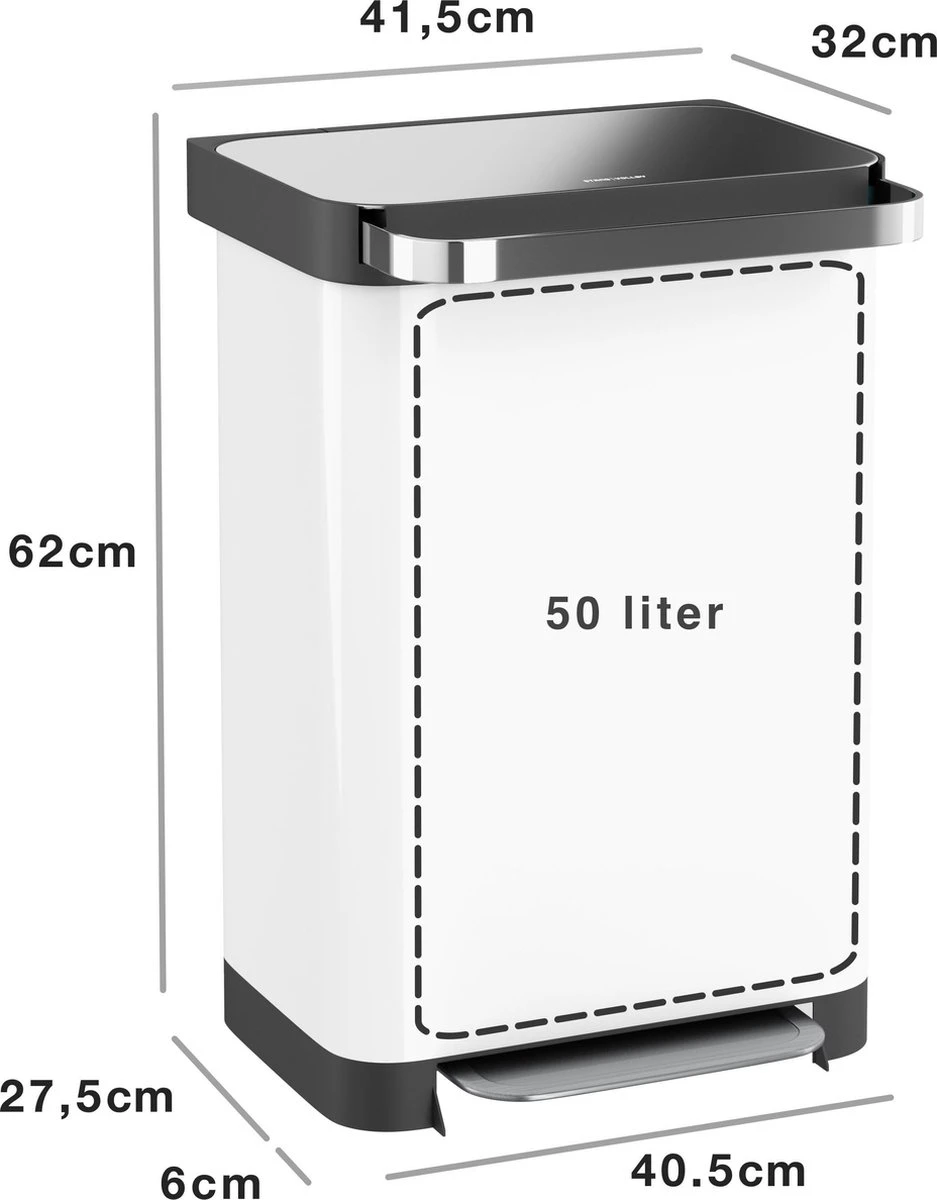 - 50 LITER INHOUD – Met een inhoud van 50 liter is deze prullenbak uitermate geschikt voor huishoudens van 4 personen of meer.