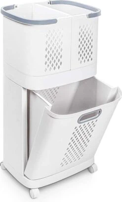 Bij het ontwerpen van deze wasmand hebben we met alles rekening gehouden, zodat jij sneller de was kunt doen en meer tijd overhoudt voor leukere dingen. Zo zijn de 2 kleine wasmanden eenvoudig van de trolley te verwijderen en dankzij een slimme plakstrip, kun je deze aan je wasmand of muur bevestigen. De grote wasmand kantelt voor snelle toegang tot de mand en wanneer de kleine wasmanden verwijderd zijn, kun je de trolley met grote wasmand als opzetplankje gebruiken. Deze wasmand is niet alleen ideaal voor het sorteren van je was, maar ook een praktische hulp tijdens het doen van de was! Door de was te sorteren bij het uitkleden, bespaar je tijd. Zo kun je de was sorteren op kleur, materiaal, handwas of vele andere mogelijkheden. Bestel deze toffe Sens Design wasmand daarom snel en maak van de was doen een feest.
